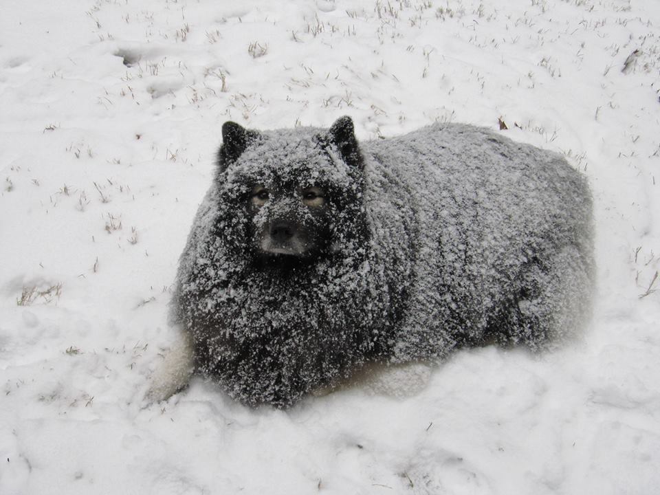 While most dogs would want to be indoors (and should be!) cuddling with their human friends in front of the fireplace during the extreme cold spells and snow that have been blanketing much of North America this winter season, there are a few breeds that would actually want to spend more time outdoors.  As you may guess from their fur coat, the Keeshond would be one of them!