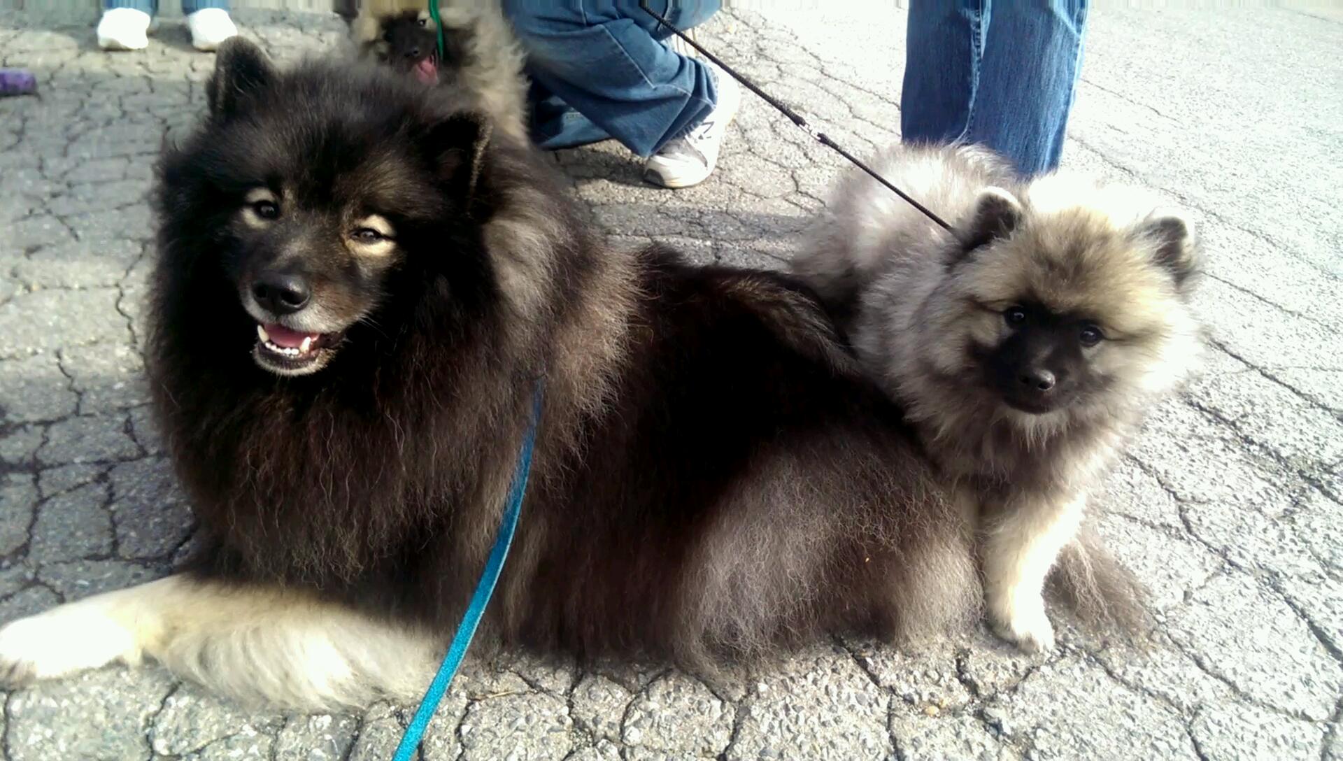 At a Capital Keeshond Club meeting, here’s Clancy enjoying spending time with “Christian”, one of the lucky Kees rescued from Marjorie’s Kennel (Puppy Mill)