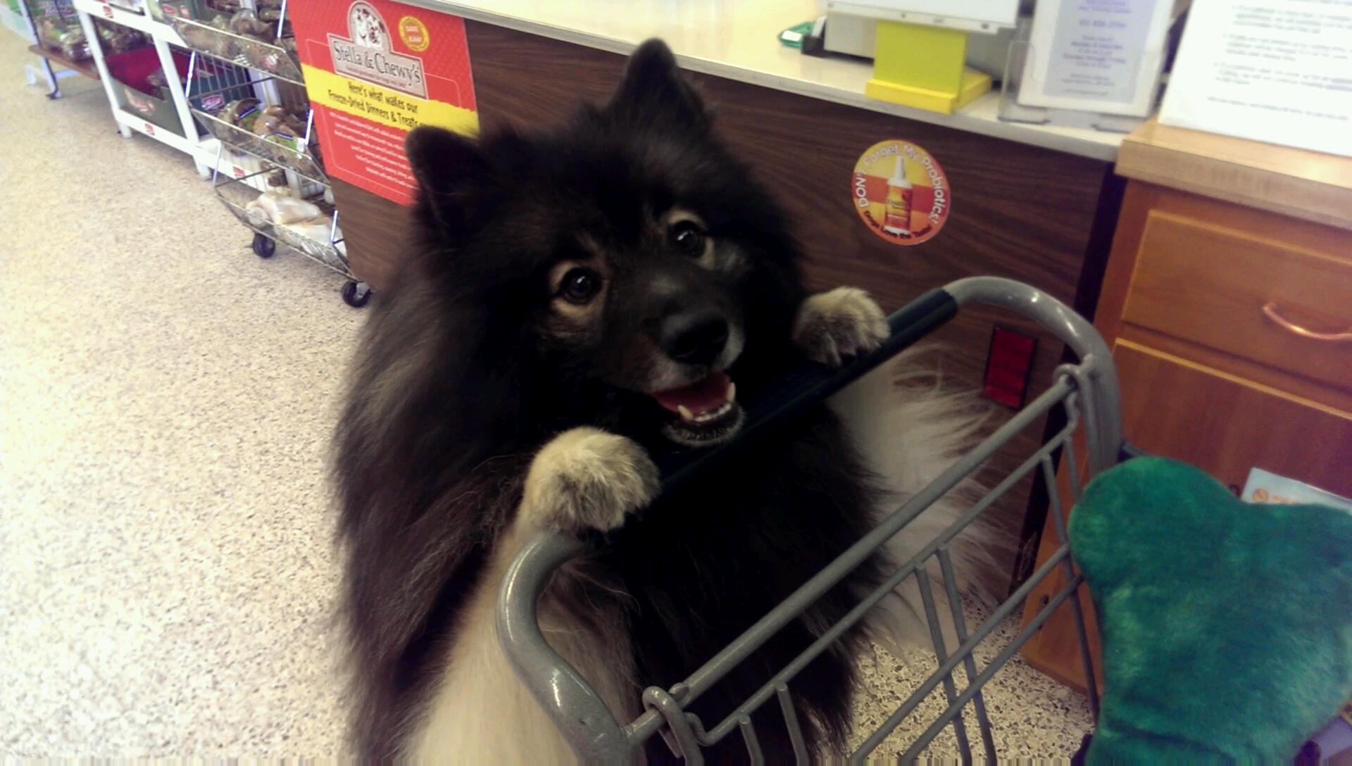 Clancy going shopping — a scene from the trick video we’re working on!
