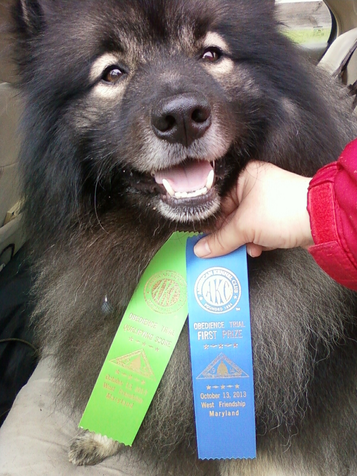 Though Clancy’s keeshond sense of humor did come out during our first Obedience Novice trial, we still got our 1st leg of our CD and 1st place!