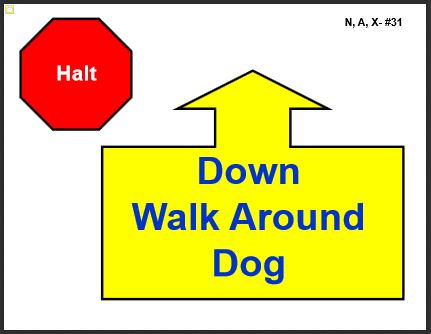 The judge is looking for you and your dog to walk briskly and most importantly, work together as a positive team. Harsh corrections (such as jerking the leash or yelling at your dog) will be severely penalized and may “NQ” you (Non-Qualify). Be sure to read and to understand the Rally regulations of the organization that you are competing in (they do vary slightly, along with the signs) AKC Rally Regulations and Description of Signs